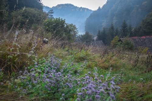 As I was slowly descending, I noticed a brown plastic can just lying there overgrown next to an abandoned house. The irony is in the fact that this item, once representing a way to cleanse Earth, now lies useless and poisons the same.